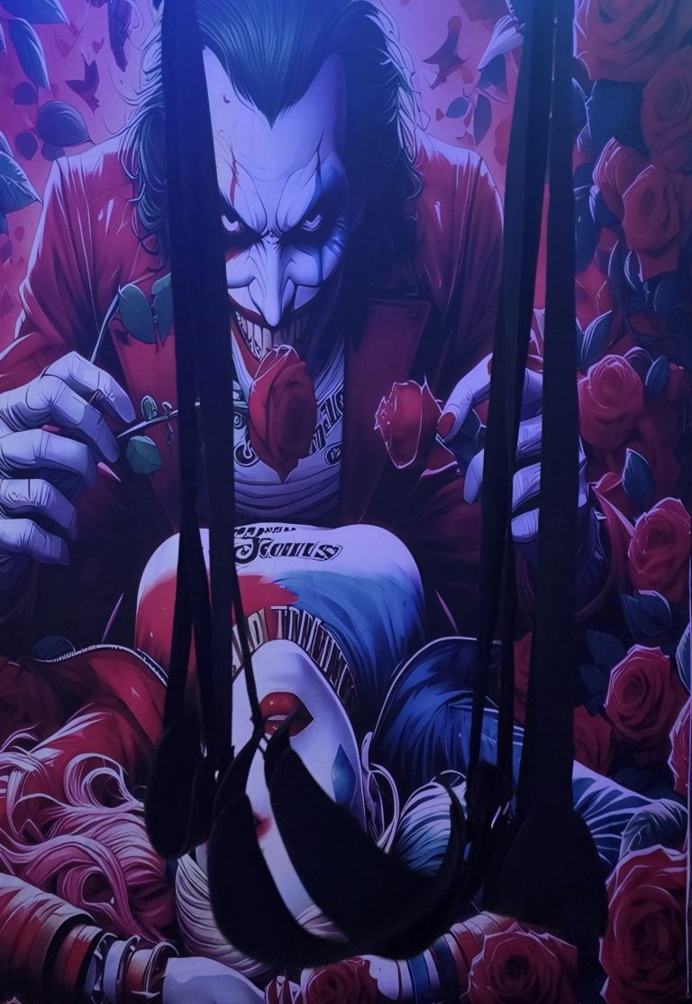Er staan leuke toestellen in de woonkamer zoals een swing, strafbankje, andreaskruis en allerlei zwepen, handboeien, kettingen, touwen, leren riemen en pakjes.